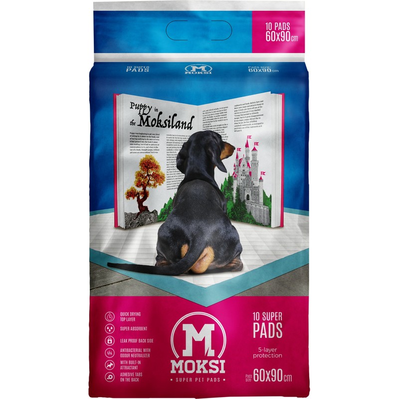 Opis proizvoda: Izaberite mesto za Moksi Super Pet Pad podlogu za trening, koja uvek treba da bude udaljena od hrane i kreveta Vašeg ljubimca. Otvorite podlogu, postavite je na pod i pričvrstite lepljivom trakom, koja se nalazi sa zadnje strane podloge. Postavite ljubimca na podlogu tokom dana, dozvolite mu da je omiriše kako bi se navikao na nju i osetio atraktant. Ne očekujte da Vaš ljubimac odmah uspešno urinira na podlogu. Ponavljajte proces koliko god je puta neophodno Vašem ljubimcu da se navikne. Kada pas uspešno urinira na prostirku, nagradite ga i pomazite. Ukoliko urinira na nekom drugom mestu van podloge, jednostavno ga postavite na nju i podstaknite ga da urinira na njoj. Nakon što se ljubimac navikao na korišćenje podloge unutra, možete da započnete da ga učite da urinira napolju. Počnite sa pomeranjem Moksi Super Pet Pad podloge ka vratima i na kraju, postavite je napolju, na mestu gde bi ste želeli da Vaš ljubimac vrši nuždu. Čuvati na tamnom i suvom mestu. Rok trajanja: neograničen.