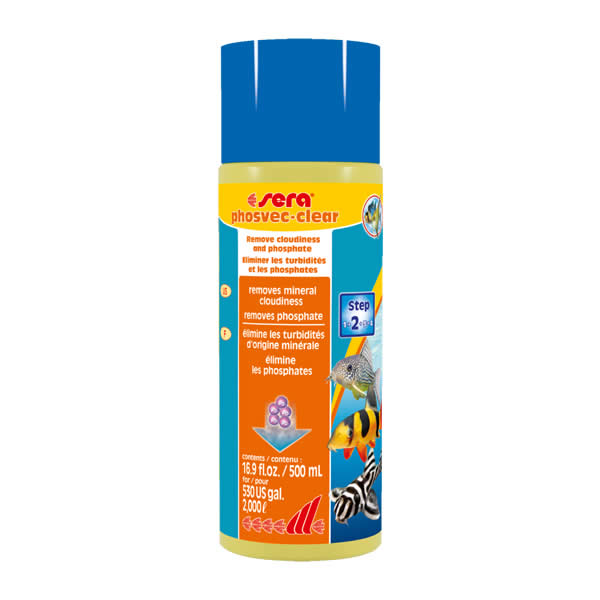 Mineralni, kao i mrtvi organski materijal (detritus) mogu izazvati dosadnu zamućenost akvarijumske vode. Ovo poslednje može dodatno povećati nivo fosfata u vodi i na taj način podržati rast algi. Sera Phosvec Clear odmah vezuje zamućenost i čini ih sakupljivim pomoću filtera. Istovremeno, uklanja višak fosfata i na taj način sprečava rast viška algi. Za trajno kristalno čistu i čistu vodu.