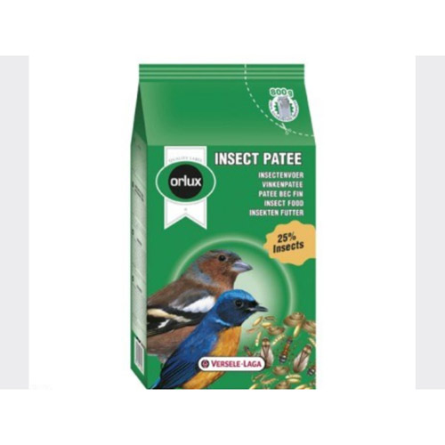 Versele-Laga Orlux Insect Pate hrana za ptice je kompletna hrana namenjena pticama koje jedu insekte. Preporučuje se kod uzgoja evropskih zeba i kod vrsta zeba koje pevaju. Obogaćena je proteinima životinjskog porekla i sušenim insektima: meksičkim larvama, insektima školjke, mravljim jajima, sušenim vodenim muvama...